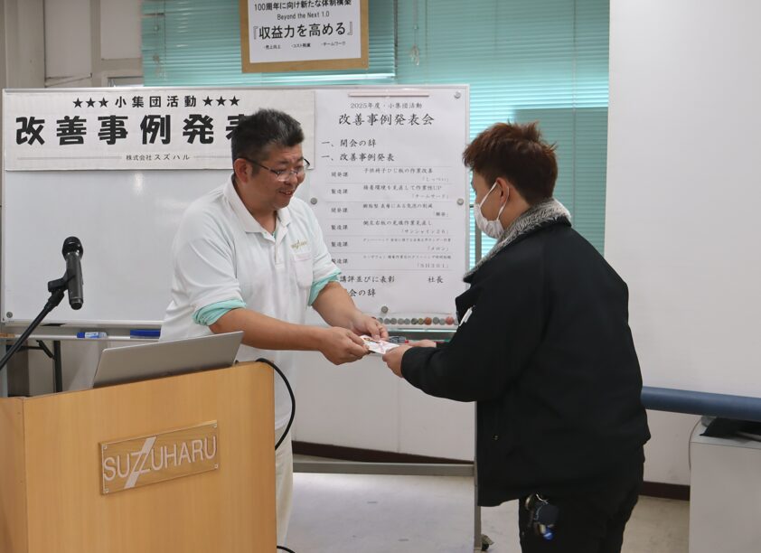 今年度の優勝は開発課による『樹脂型表層にある気泡の削減』です。